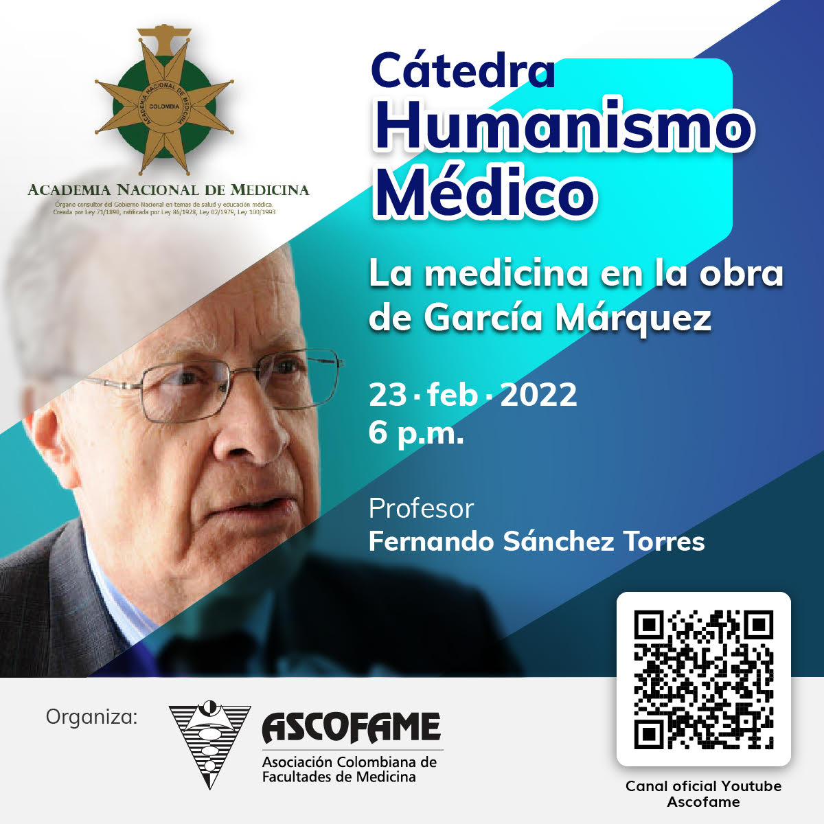 Lo invitamos a conectarse hoy miércoles 23 de febrero a partir de las 6 p.m a la Cátedra sobre Humanismo Médico ofrecida por la Academia Nacional de Medicina, con el apoyo de Ascofame. En esta oportunidad nos acompañará el Profesor Fernando Sanchéz torres, con su catedra: la medicina en la obra de García Máquez.