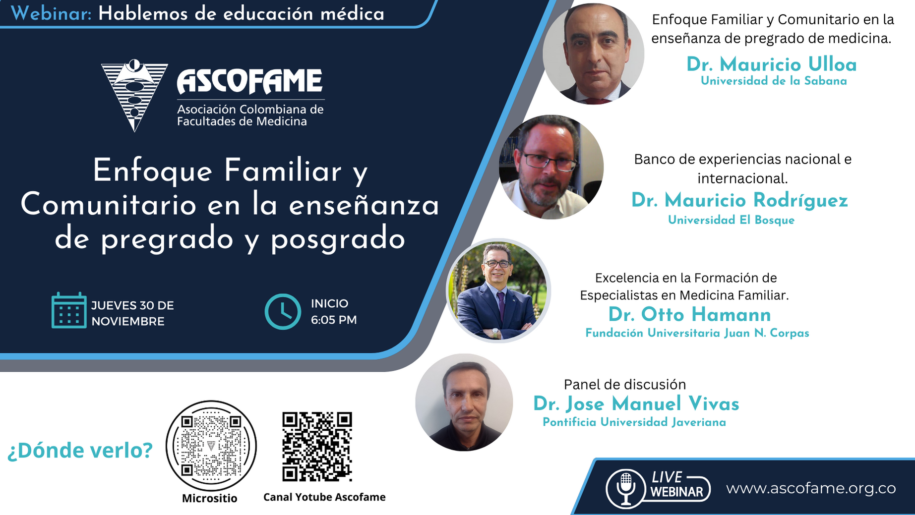 Director de la Escuela de Medicina Universidad del Valle y miembro de la Junta Directiva de Ascofame en representación de la región Suroccidente. Médico, especialista en pediatría y neonatología de la Universidad de Valle. Magister en Epidemiologia e investigador asociado de Colciencias y director del Grupo de investigación INSIDE.